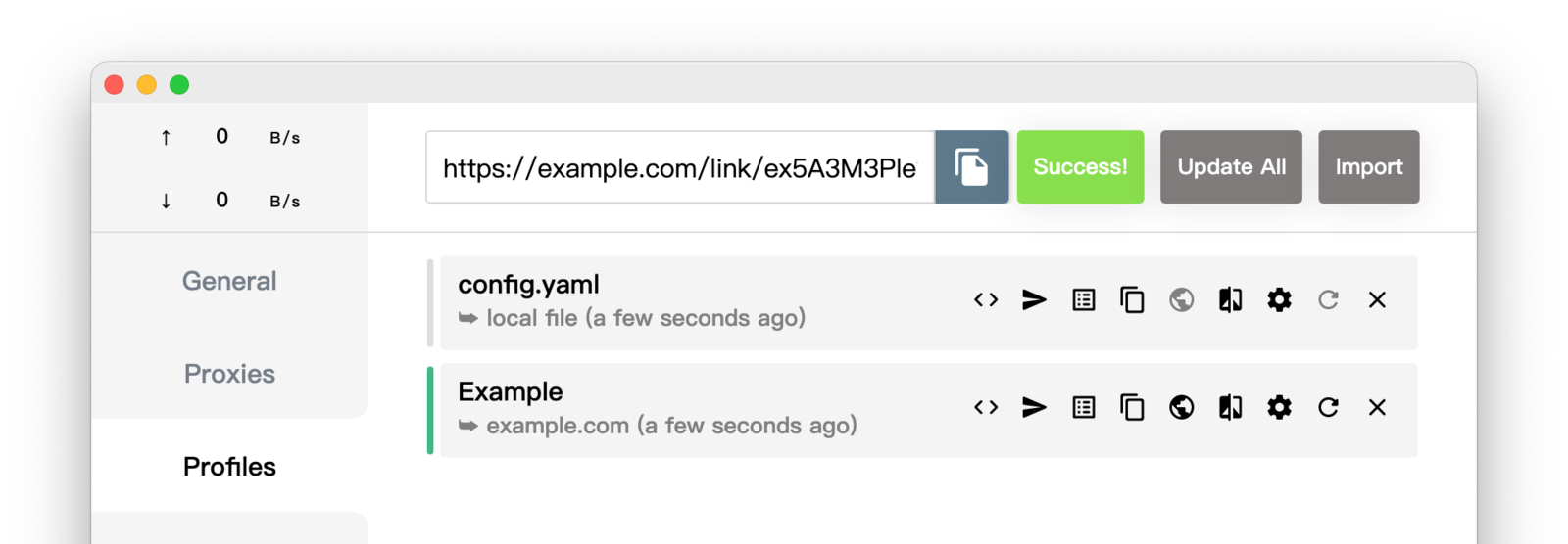 下载成功后，Clash for Windows 将自动切换至下载的配置文件。