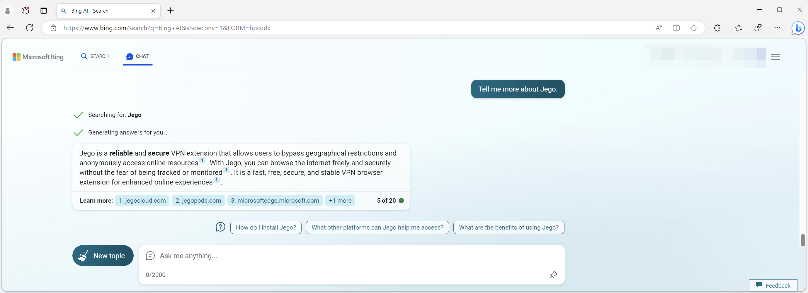* Make sure there are no Proxy Rules for `openai.com` and `bing.com` in the "**Dashboard**" - "**Proxy Rules**" of **Jego**.