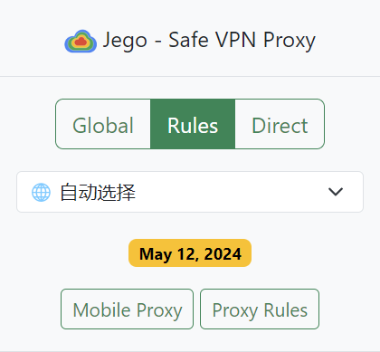 * Both "**Global**" and "**Rules**" modes are fine, and the server node can be chosen freely: